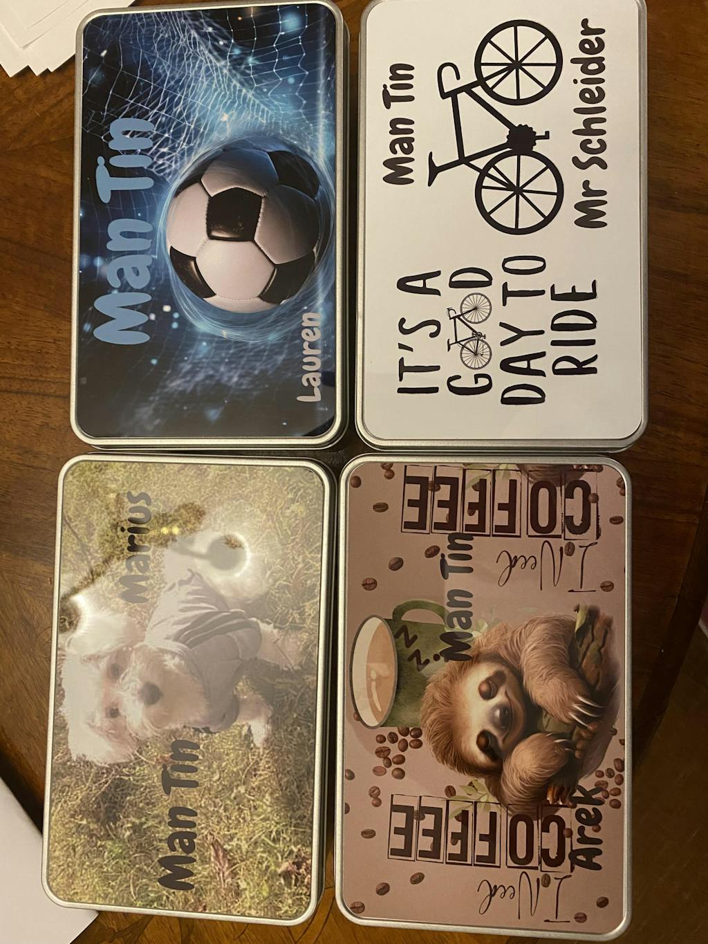 Love these tins - sublimate beautifully- easy press 190 for 70 seconds - great pressies - fill with biscuits, sweets, dog treats or just bits and bobs